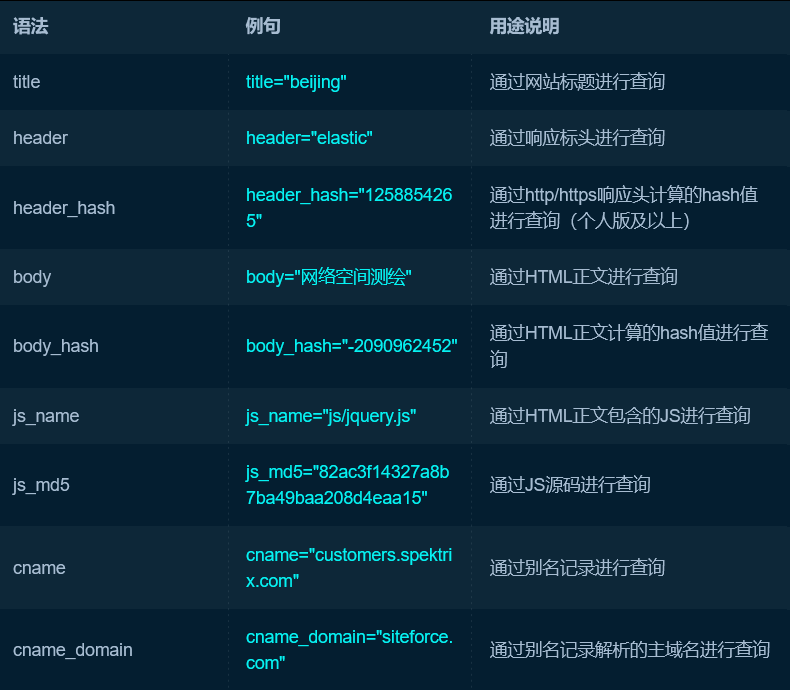 2. 常用 FOFA 查询字段